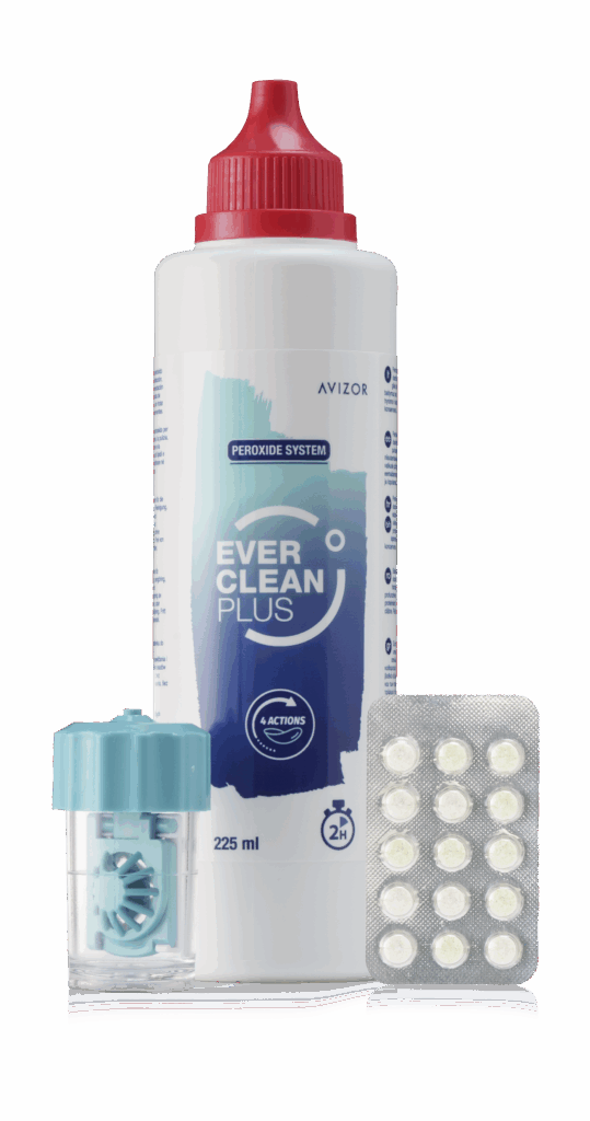 Ever Clean Plus is zeer effectief in het grondig verwijderen van lipiden en proteïnen van het lensoppervlak. Daarnaast is Ever Clean Plus ook effectief tegen schimmels, bacteriën en acanthamoeba. De reinigende werking gebeurt op basis van enzymen terwijl tegelijkertijd desinfectie plaatsvindt door het peroxide. Dit zorgt ervoor dat het oppervlak van de lens schoon wordt voordat proteïnen kunnen denatureren, waardoor de lens ook bij langdurig gebruik niet vervuilt. Tevens zorgt de toevoeging van het extra bevochtigings- component povidone voor verbeterde bevochtiging en draagcomfort.